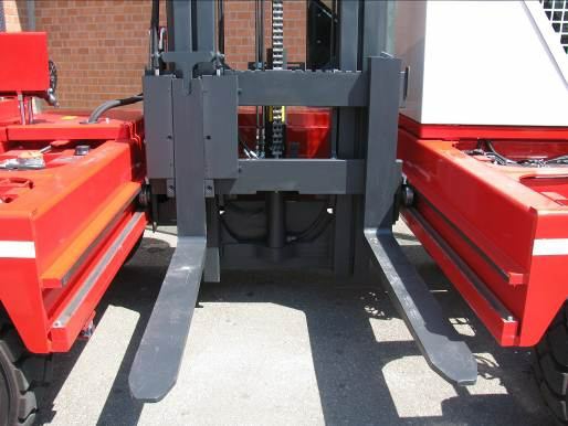 Мачты сконструированы специально для боковых погрузчиков с учетом сил кручения. Как правило, двойные мачты BP имеют уникальный 600-мм подъемник. Направляющие и выходные валы установлены на полный подшипник; выходные направляющие заменяемы. Когда датчики регистрируют достижение конечных положений, бортовой компьютер автоматически снижает скорость движения мачты.